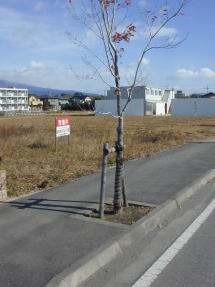 2図のLECの看板を左折して7本目のこの木だけ幹にわらが巻いてある。何故か? 誰(A)が何(B)をどうした(C)のかを答えよ。 A、B、C全て正解でボーナス点1点